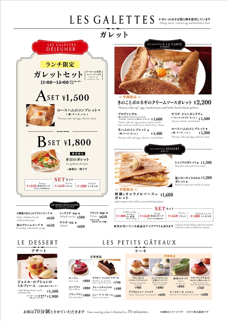 - 店内のカフェスペースでは、ケーキやパンの他に作りたてのガレットなどもお召し上がり頂けます。