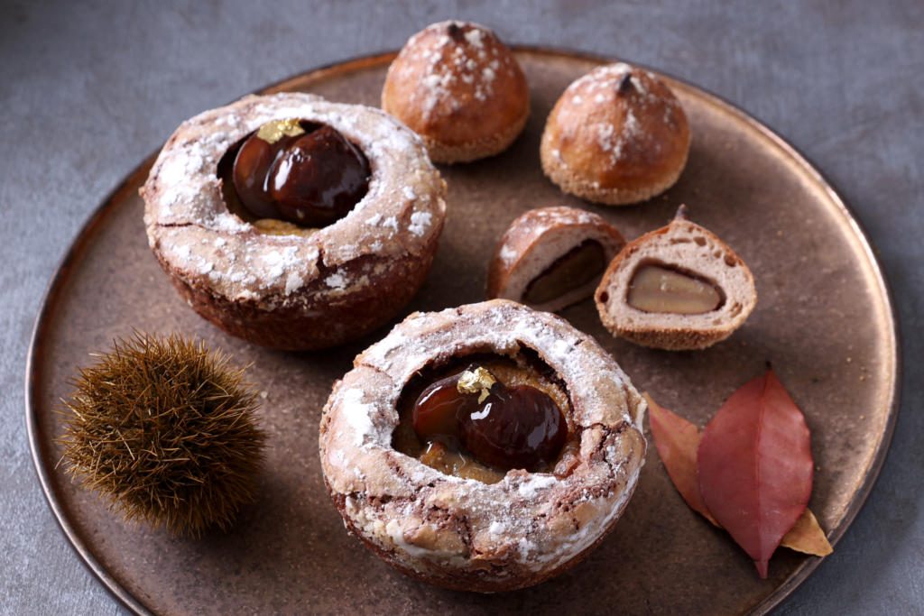 濃厚なマロンクリームを包み込んだ「マロンクリームパン」や見た目が栗そのものの「シャティーニュ~栗粉を使ったパンでラム酒漬け栗を包んで~」などを販売いたします。