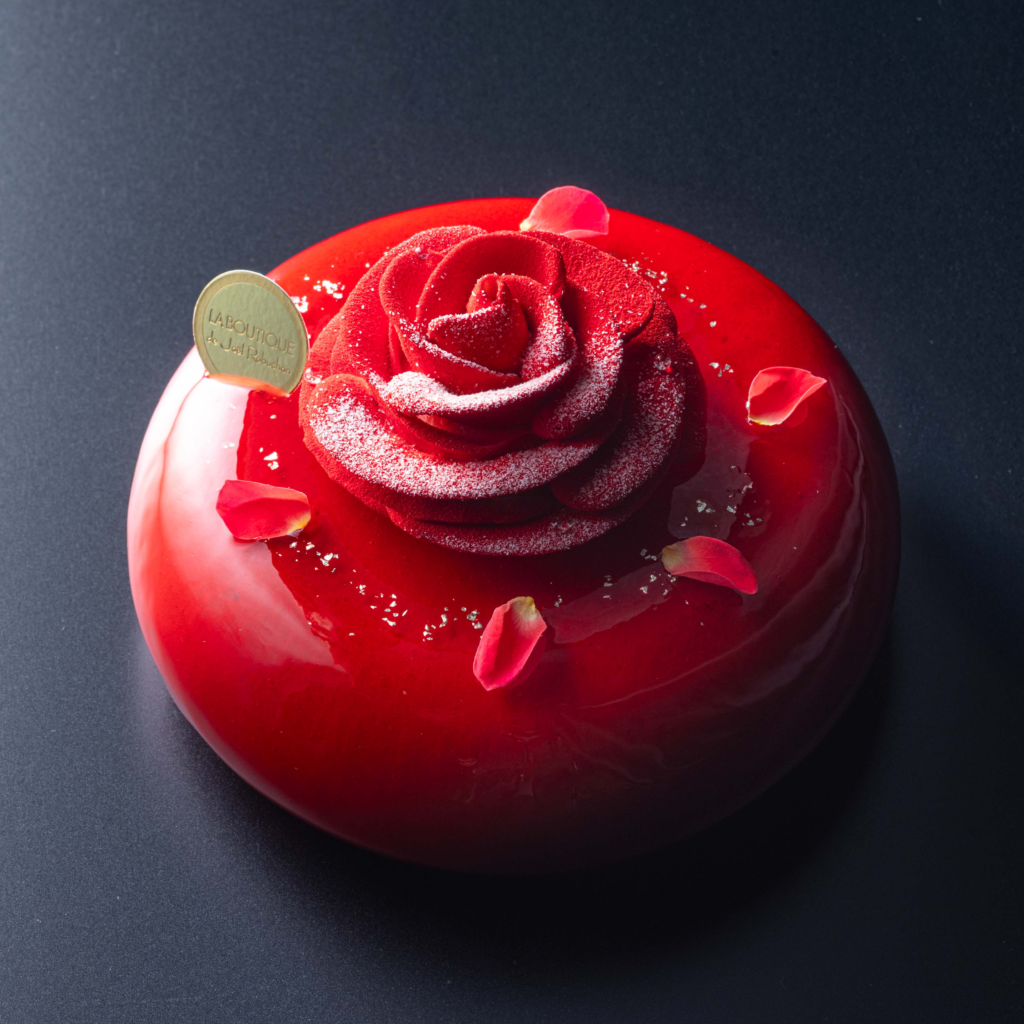 マリー・アントワネットが愛したバラの花びらとフランス ヴェルサイユの王立菜園から採れた新鮮なりんごで香り付けした「マリー・アントワネットティー」を使用し、チョコレートのムースにバラ風味のラズベリーのジュレを閉じ込めました。