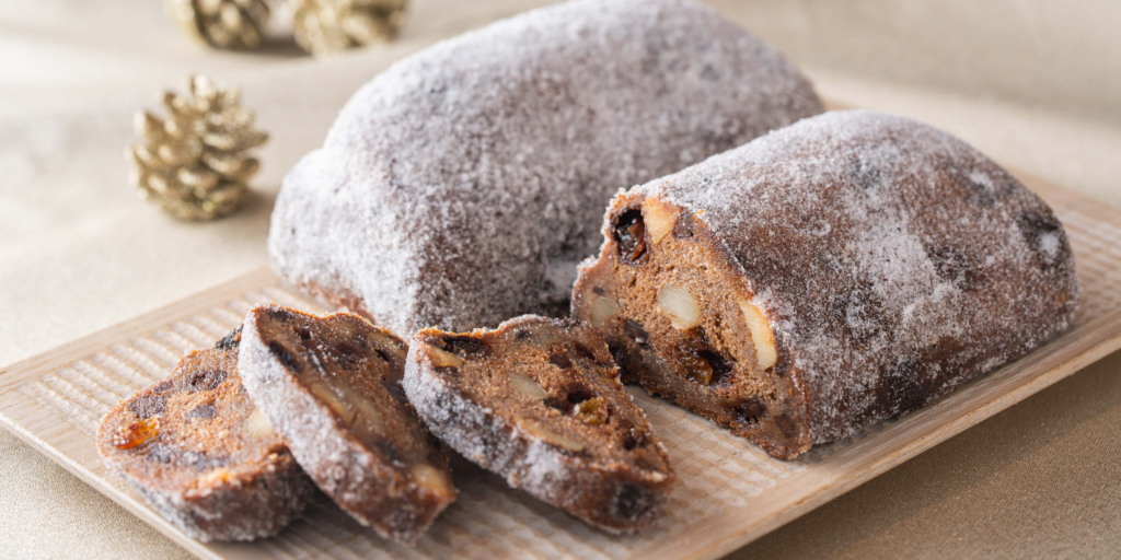 伝統的なクリスマスの発酵菓子です。ラム酒やキルシュなどの洋酒にじっくりと漬け込んだ7種類のドライフルーツとナッツをたっぷり練りこみ、コクのある深い味わいのシュトーレンです。上品な甘みと口どけのよい和三盆で仕上げています。日々熟成するので、食べるたびに深まる味わいをお楽しみ頂けます。