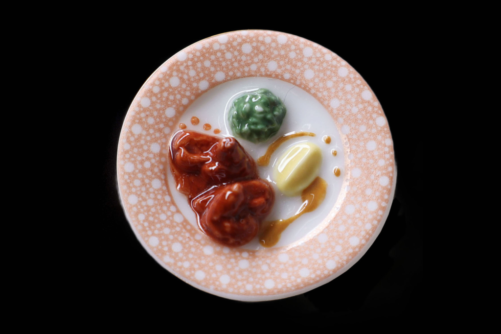 フランスの工房で一つ一つ手作りするこのフェーブは、うずらの付け合わせのポテトピュレやハーブのサラダ、お皿でそのまま再現し、裏面には「2026年」と印字してご用意いたします。