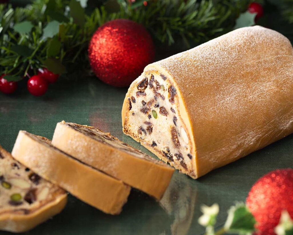 伝統的なクリスマスの発酵菓子です。ラム酒やキルシュなどの洋酒にじっくりと漬け込んだドライフルーツとナッツをたっぷり練りこみ、コクのある深い味わいのシュトーレンです。上品な甘みと口どけのよい和三盆で仕上げています。日々熟成するので、食べるたびに深まる味わいをお楽しみ頂けます。