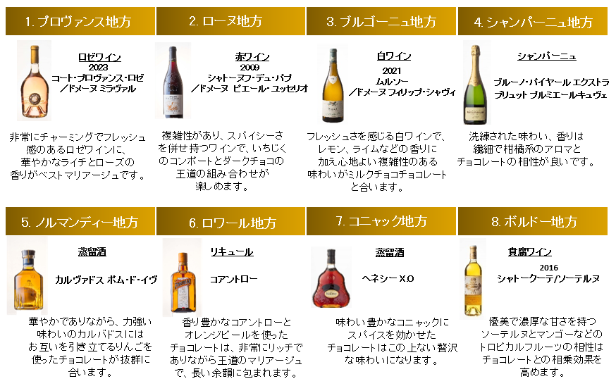 フランスの8つの地域の伝統的なお酒を使ったスペシャルなショコラをご用意しました。