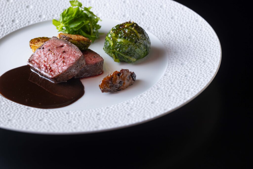 北海道産北見エゾジカのロティとシューファルシ 芳醇なポワブラードソースで
